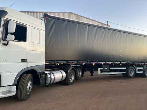 Lonas laterais de alta tenacidade fabricadas em poliéster revestido com PVC. A parte inferior das lonas é equipada com fivelas em material plástico de alta resistência, montadas com fitas de poliéster de alta tenacidade com ganchos. A parte superior das lonas é equipada com rodízios em plástico de alta resistência para que a lona possa ser aberta, correr no perfil superior. Nas extremidades das lonas são instalados perfis de alumínio, que por sua vez são encaixados em tubos com catracas para o tencionamento das lonas.