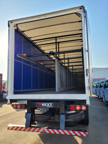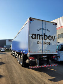 Sistema interno pneumático tipo Asa Delta e cinta de travamento de paletes. Sistema de lona corrediça, presa em cima e embaixo facilitando a abertura lateral, com possibilidades de baias longitudinais. Produto com ótima disponibilidade de área para identificação de logomarca.